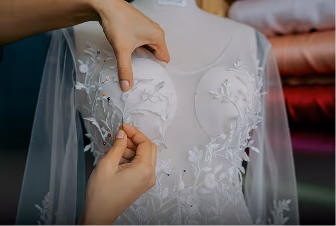 Clients may choose from our in-house embroidery swatches or share their own designs and patterns. We then create an initial sample based on the brief.
