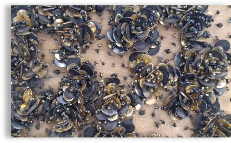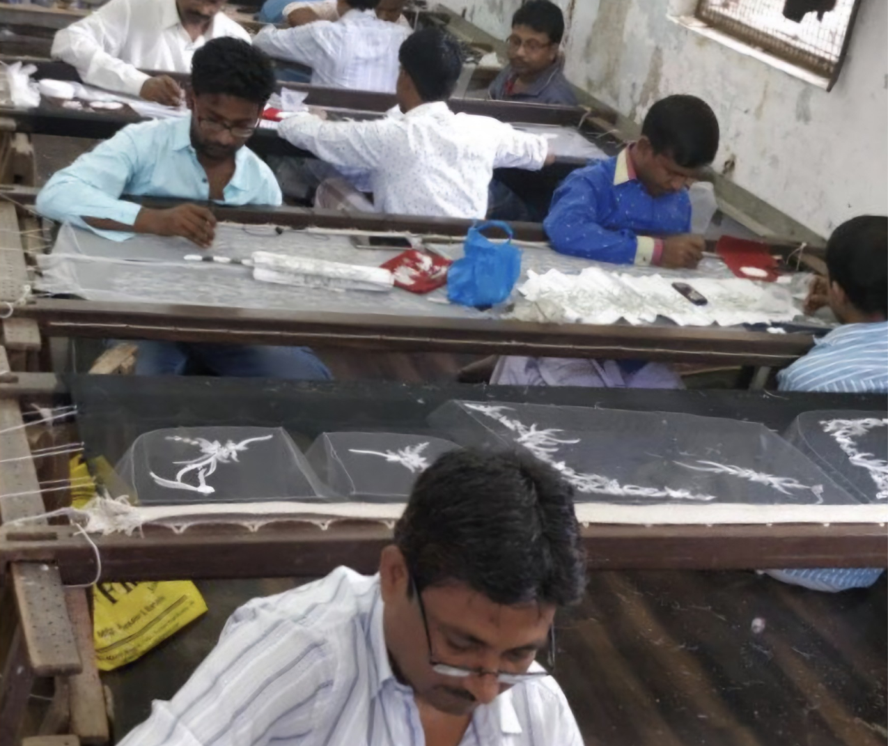 Our in-house sampling unit consistsof 10–15 highly skilled artisans who meticulously handcraft embroidery swatches and bespoke samples. For larger production orders, we work with 10 specialised partner factories with a combined capacity of over 100 craftsmen, ensuring scalability without compromising on quality.